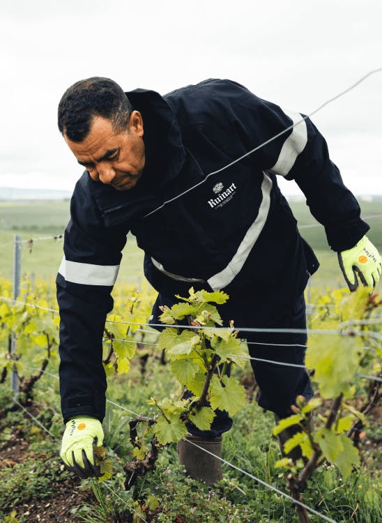 Chaleurs prématurées ou tardives, record de températures, taux d’ensoleillement et pluviométrie devenus imprévisibles : observatrice quotidienne et aux premières loges d’une nature qui s’émancipe au grès des mutations climatiques, la Maison Ruinart se veut surtout actrice pour la protection de son précieux territoire. « Tout commence dans le vignoble, là où nos fruits s’épanouissent. La mise en œuvre d’une viticulture plus durable est essentielle pour préserver à la fois l’environnement, la qualité des sols et celle de nos raisins », confirme Jean-François Jourdain, responsable des vignobles de Sillery et Taissy. Aux avant-gardes de la viticulture durable, Ruinart initie une transformation progressive de ses pratiques dès le début des années 2000. Vingt ans plus tard, la Maison a réduit son utilisation d’intrants et de fongicides de 50% et ne recourt plus aux herbicides ni aux insecticides.